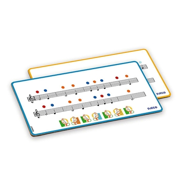 Hver stav har sin egen farvemarkering, så det er let at spille efter de medfølgende noder.