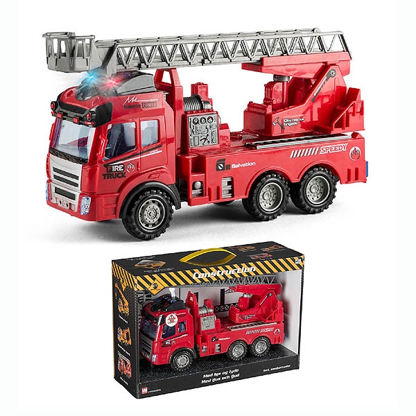 Stor brandbil med lys og lyd og friktion/pull back "motor"