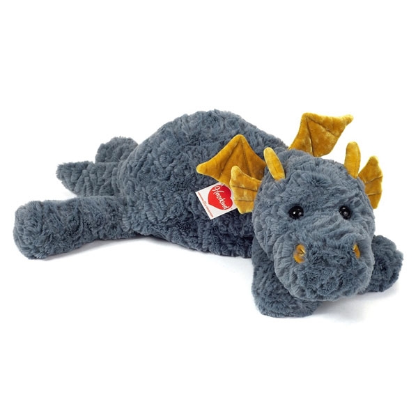 Den har gule vinger, ører og horn i velour. Og kroppen er af det blødeste plys.