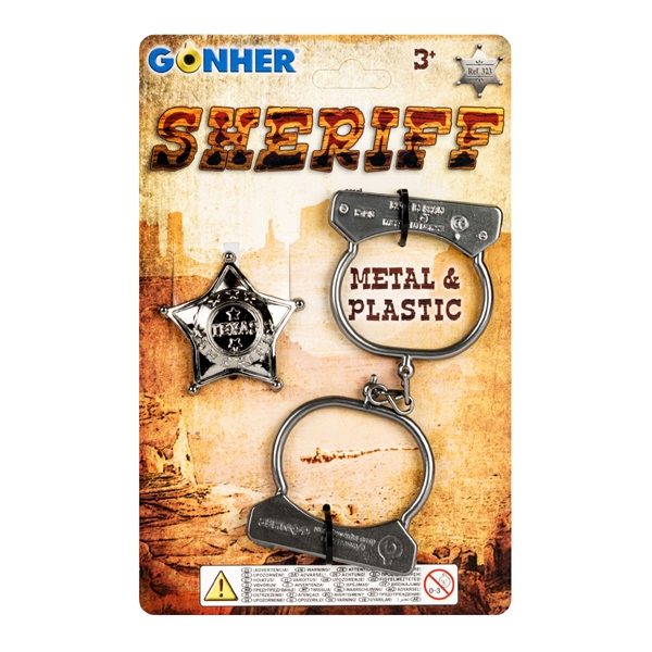 Ingen sherif uden sherifstjerne - og selvfølgelig skal der også et par håndjern med til jobbet.