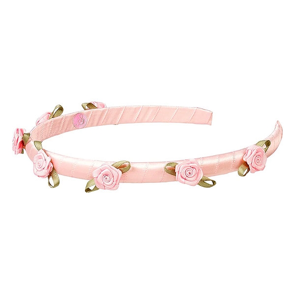 Roserne er fremstillet af stof i sart rosa med blade af støvet grønne silkebånd.