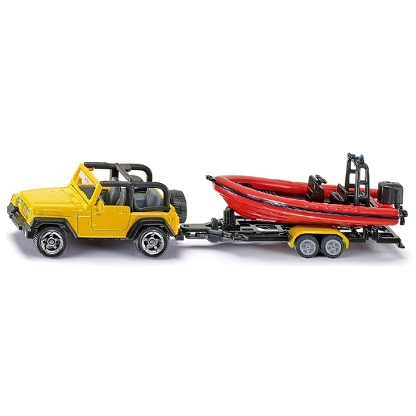 Jeep med anhænger og båd fra Siku.