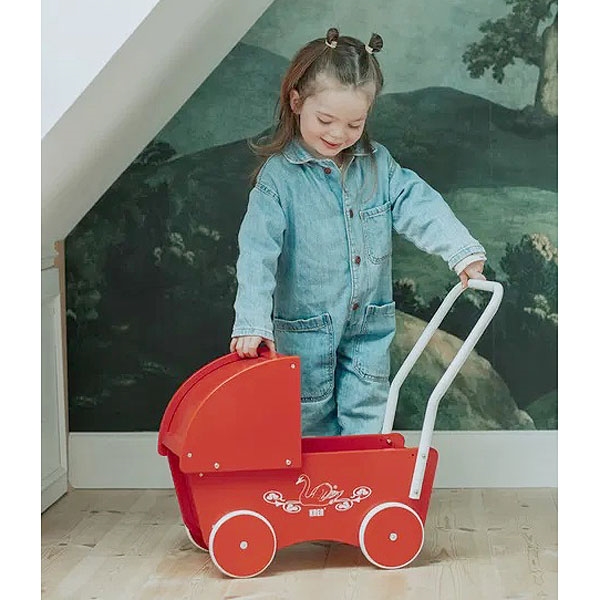 Klassisk rød træ-dukkevogn fra KREA