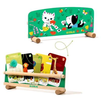 Djeco kortholder til bord, i træ med sødt kattemotiv, gør det nemt at holde styr på dine kort.