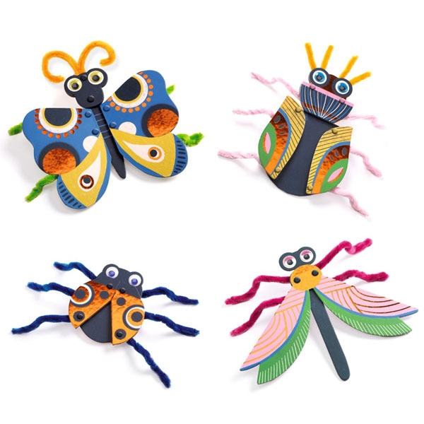 Kreativt sæt, der indeholder piberenser, hvor du kan påføre de forskellige insekt motiver i kraftig karton. Bagefter kan du give dem sjove øjne.