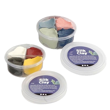 Sættet indeholder 2 bøtter Silk Clay med ialt 8 farver ler. Silk Clay er let at arbejde med, og når det hærder op holder det sin facon.