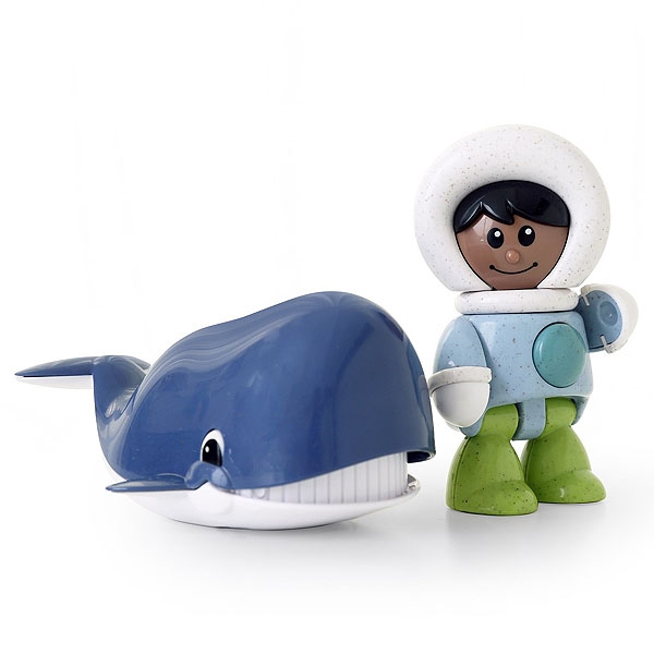 Mål: hvalen er 14,5 cm lang, inuit barnet er 11 cm høj.